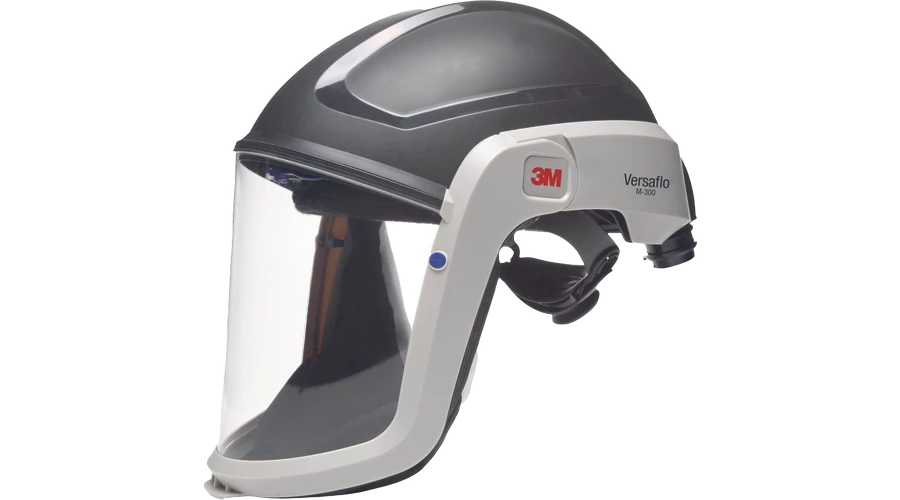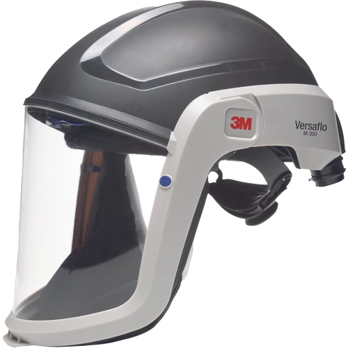 3M ™ Versaflo ™ The M-307 helmet features a fireproof polyester face seal for applications where sparks and hot particles are present. Our helmet has a polycarbonate lined visor, a fully adjustable clamping system that includes a textile harness for proper fit and weight distribution, and a deflector to direct the flow of air inside the headband.