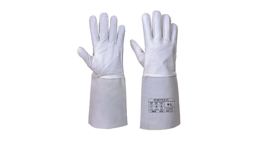 Kiváló fogásbiztonságot garantáló puha és rugalmas kecskebőr tenyérrel készülő prémium hegesztőkesztyű. B-típusú AWI hegesztéshez para-aramid szállal varrva., CE minősítés, Ideális hegesztéshez és fémkezeléshez, Para-Aramid varrás, Puha rugalmas kecskebőr tenyér