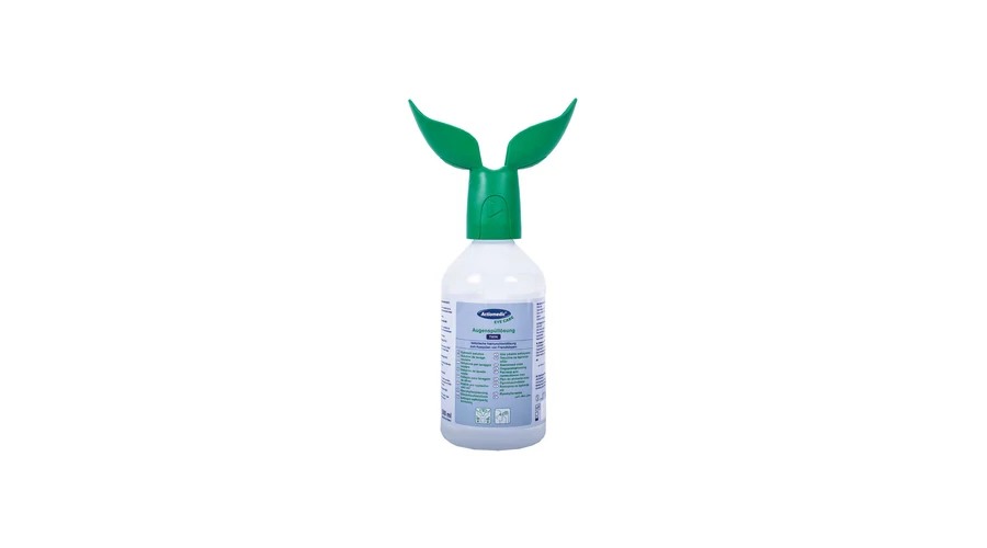 Steril szemkimosó palack 0.9%-os nátrium-klorid oldattal, idegen testek, pl. fa- és fémforgácsok, por, szennyeződések kiöblítésére. Ergonomikus TWIN öblítőfejjel mindkét szem egyidejű öblítéséhez. Megfelel a DIN EN 15 154-4 szabványnak. Mobil használatra vagy állomások és tartók feltöltésére is. Öblítési idő: kb. 2.5 perc. Eltarthatóság: 3 év.