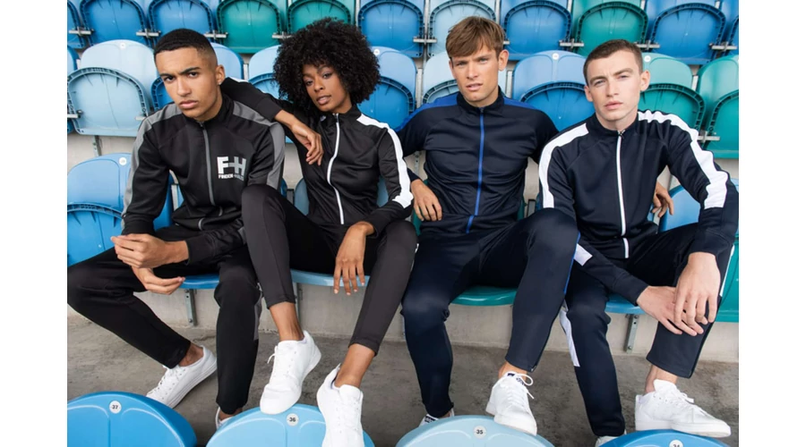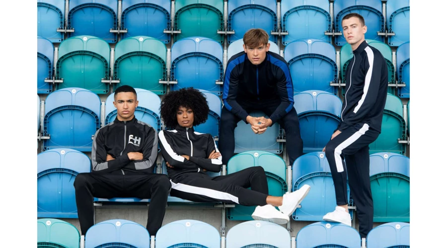 100% Polyester Interlock;Slim leg;Contrast colour side panels;Zipped side pockets;Elasticated waist with internal drawcord;Ankle zips with zip guard and semiautomatic lock zip sliders;