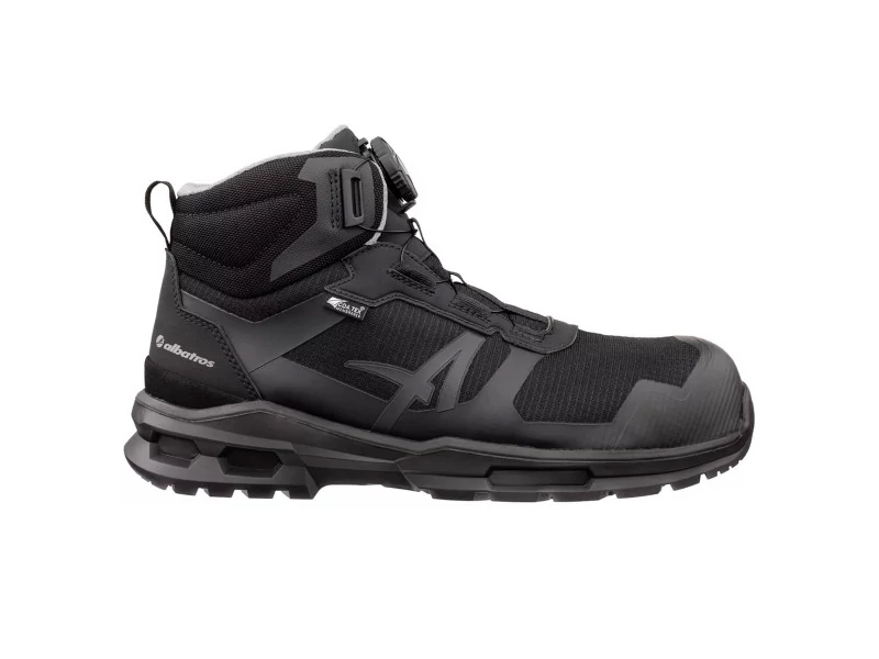 Albatros HALO Black DISC Mid munkavédelmi bakancsAz Albatros HALO Black DISC Mid munkavédelmi bakancs S7S ESD FO SR védelemmel készült, könnyű és rendkívül rugalmas kivitelben üvegszálas orrvédelemmel és FAP® LITE átszúrás elleni védelemmel, a COA.TEX® membrán és a QUICK LOCK (DISC) gyorszár pedig kényelmes, stabil illeszkedést ad változó körülmények között is.Főbb jellemzők:S7S ESD FO SR védelmi szintÜvegszálas orrvédelem + FAP® LITE rugalmas átszúrás elleni védelemRipstop felsőrész FITFRAME® erősítésekkel a tartósságértCOA.TEX® vízálló és légáteresztő membránQUICK LOCK (DISC) gyorszáras fűzőrendszer a gyors, pontos beállításhozBreathActive bélés + evercushion® RELIEF talpbetét a komfortos viseletértNEOFLEX talpszerkezet: csúszásbiztos EXOshell külső réteg + EFFECT.FOAM csillapítás kiváló ütéselnyeléssel és akár 60% energia-visszaadássalIdeális, ha olyan vízálló, jól szellőző és gyorsan állítható bakancsot keresel, ami nagyon rugalmas, mégis stabilan tart, és közben a NEOFLEX csillapítással kíméli a lábat hosszú műszakokban is.
