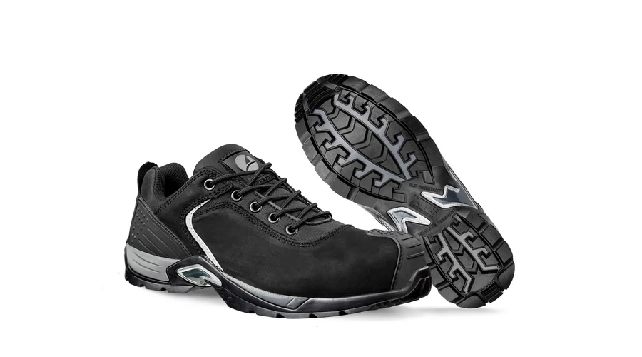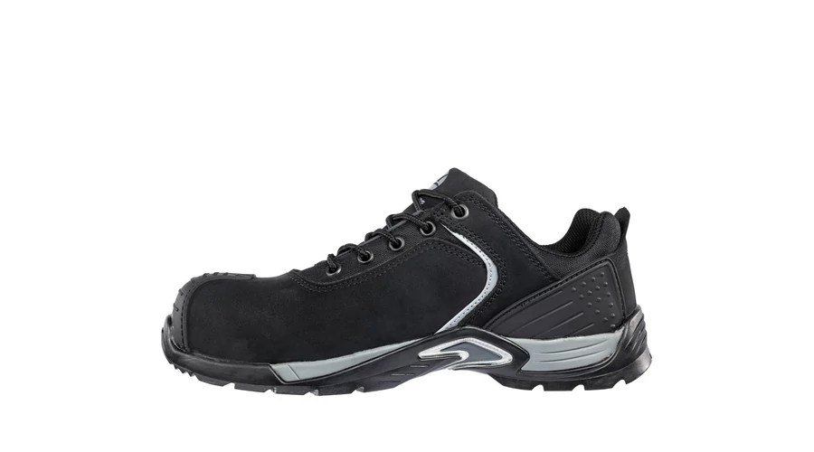 A RUNNER XTS LOW üvegszálas orrmerevítővel és fémmentes, rugalmas FAP® behatolásvédelemmel ideális biztonsági cipő a sok gyaloglással járó munkákhoz, például az építőiparban vagy a logisztikában. A kiváló minőségű olajozott nubukbőrből készült felsőrész vízlepergető és a kevés varrásnak köszönhetően könnyen tisztítható. A strapabíró, akár 300°C-ig hőálló, különböző alakú profilelemekkel biztosítja a tapadást a különböző felületeken, és öntisztuló tulajdonságokkal rendelkezik. A talp az ütéscsillapító EVA középtalppal és a láb természetes gördülési mozgásában az ízületeket támogató torzióvédő elemmel együtt az innovatív technológia és a kényelem tökéletes egységét alkotja. A cipő orr-részén lévő megemelt TPU-fedél védi a cipőt a kopástól, különösen térdeléskor.