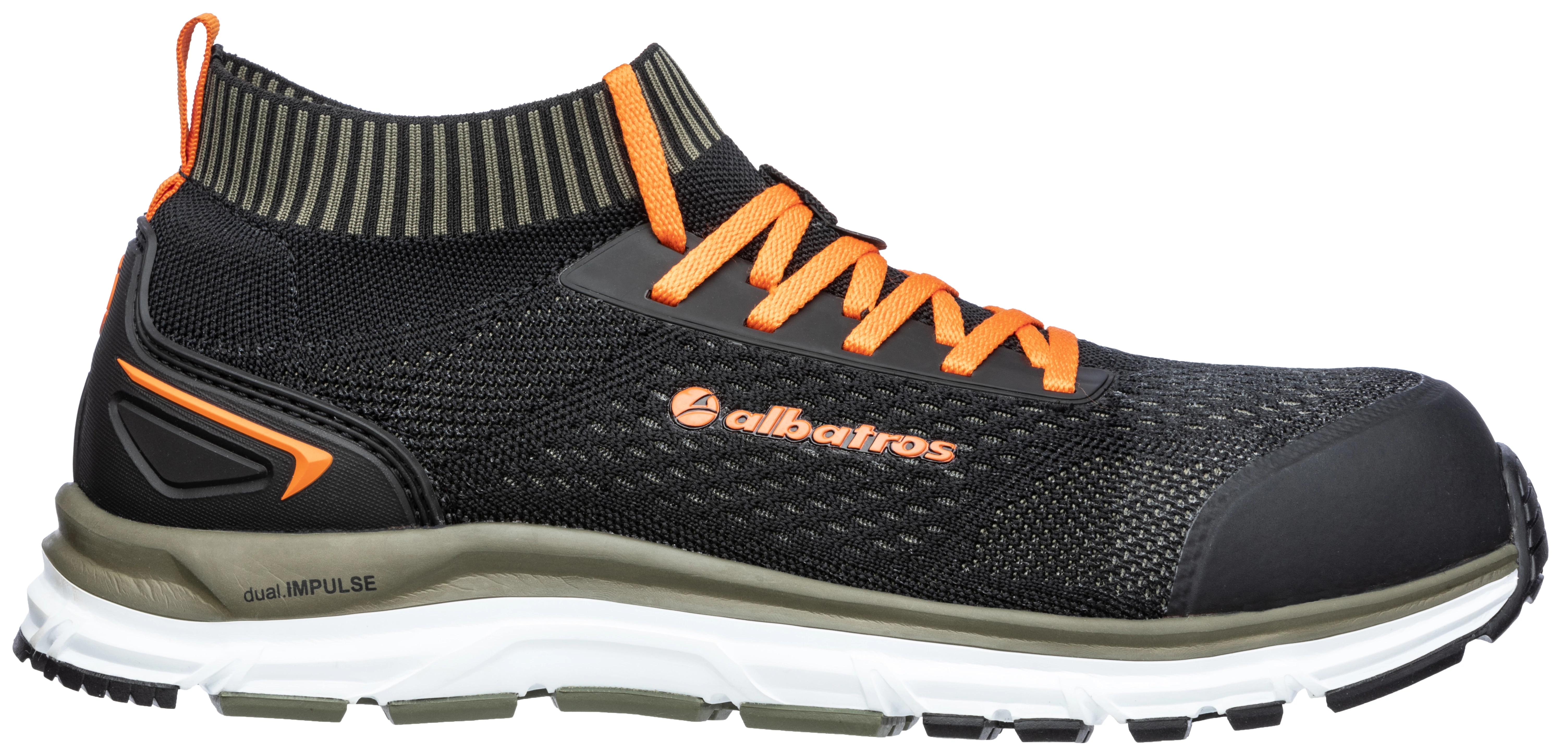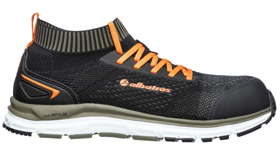 A legújabb technológiával készült Albatros munkavédelmi cipő. Teljesen fémmentes! SafetyKnit® felsőrész, gumírozott belebújó rész a tökéletes kényelem és illeszkedés érdekében. Maga a felsőrész, mint egy rendkívül könnyű és lélegző zokni, úgy illeszkedik a viselője lábához. Üvegszálas orrmerevítővel és hajlékony kerámiaszálas talpátszúrás elleni védelemmel van ellátva. Anatómiailag kialakított, kivehető talpbetéttel. ESD tulajdonságokkal. IMPULSE.FOAM talpréteggel és csúszásmentes, 300°C-ig hőálló gumi talppal. Extra: fémmentes, ESD, comfit®AIR talpbetét, TPU sarok- és orrmegerősítés, jól láthatósági elemek, SafetyKnit®, IMPULSE.FOAM® talpszerkezet