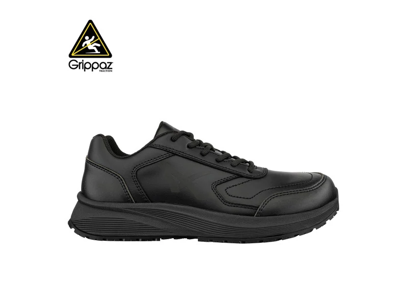 Albatros Vibe BLK ST Low O2 FO SR munkavédelmi cipő – Sportos dizájn és professzionális védelemAz Albatros Vibe BLK ST Low munkavédelmi cipő sportos megjelenése mellett kiemelkedő kényelmet és tartósságot kínál, ideális választás a vendéglátás és szolgáltatás területén dolgozóknak. A vízlepergető bevonatos bőr felsőrész ellenáll a tisztítószereknek, zsíroknak és savaknak, míg az IMPULSE.LITE középtalp és a COMFIT® RELAX memóriahabos talpbetét hosszan tartó kényelmet biztosítanak.Főbb jellemzők:Bevonatos bőr felsőrész – vízlepergető és vegyszerálló kivitelIMPULSE.LITE középtalp – energiaelnyelés és rugalmasságCOMFIT® RELAX memóriahabos talpbetét – extra komfortérzet a hosszú műszakokhozGRIPPAZ® gumitalp – kiváló tapadás zsíros és nedves felületekenSportos, modern dizájn – jól illeszkedik a munkaruházathozMűszaki adatok:Védelmi besorolás: O2 FO SRFelsőrész anyaga: vízlepergető, bevonatos bőrTalp: GRIPPAZ® csúszásmentes gumitalpBelső komfort: COMFIT® RELAX memóriahabos talpbetétAz Albatros Vibe BLK ST Low cipő ideális választás, ha megbízható csúszásvédelemre, vegyszerálló felsőrészre és kényelmes viseletre van szükség a mindennapi munkában.