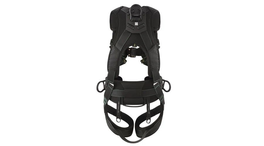 - 2 bekötési pont: 1 hátsó fém D-gyűrű és 2 heveder hurok a mellkasi részen, 2 munkahelyzet-beállító D-gyűrű a a derékövön