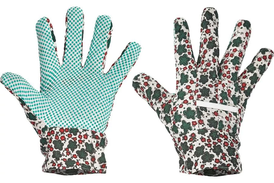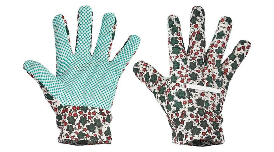 Színes kötött pamutkelméből varrt kesztyű PVC-vel pontozott tenyérrel és ujjakkal