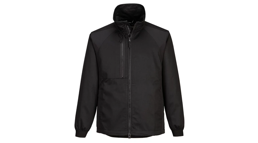 Az innovatív stretch panelek tartós újrahasznosított poliészterrel és pamuttal kombinálva egy intelligens, de kényelmes kabátot eredményeznek, amely megkönnyíti a mozgást.