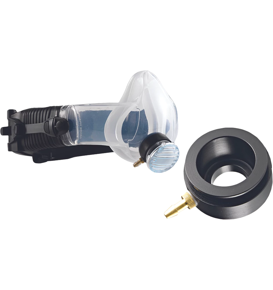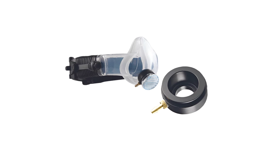 - A maszkillesztés-ellenőrző adapter a félálarc elülső részébe felszerelve lehetővé teszi a kvantitatív illeszkedés tesztet