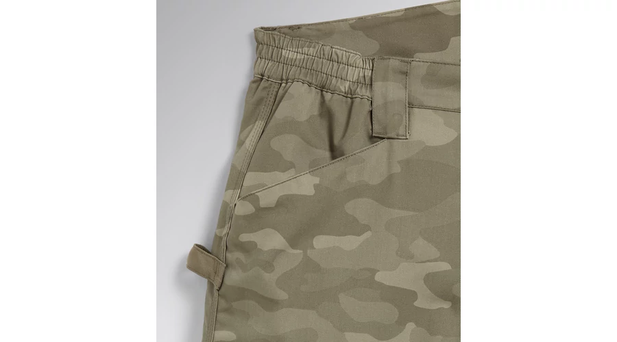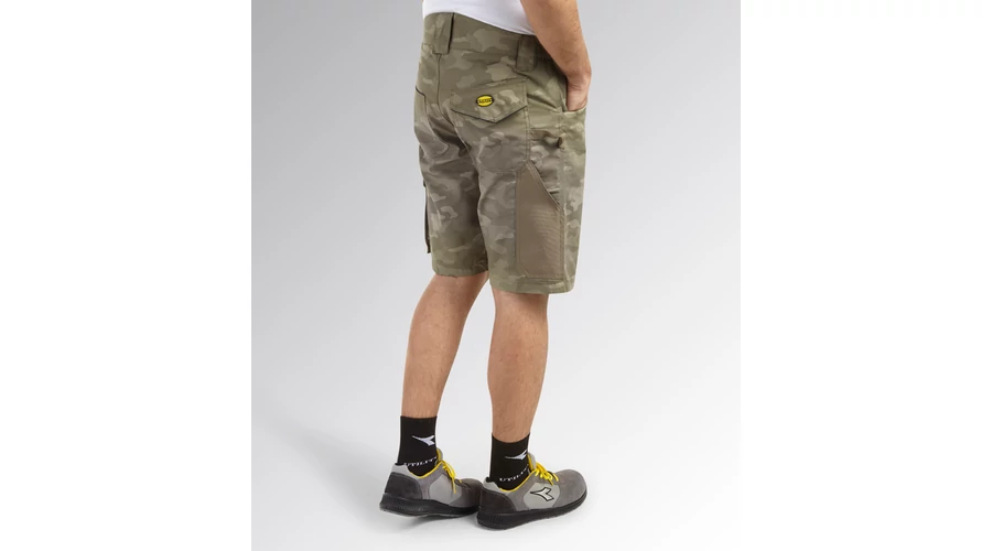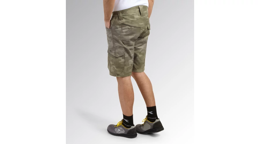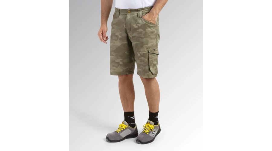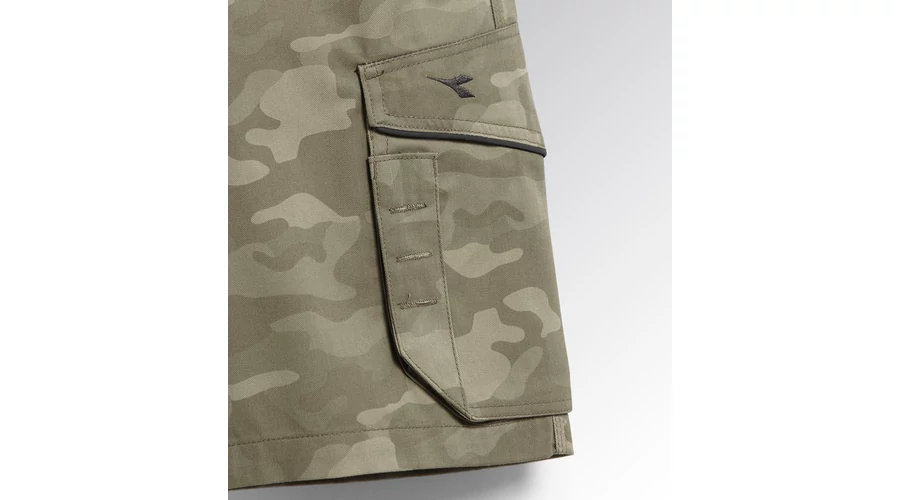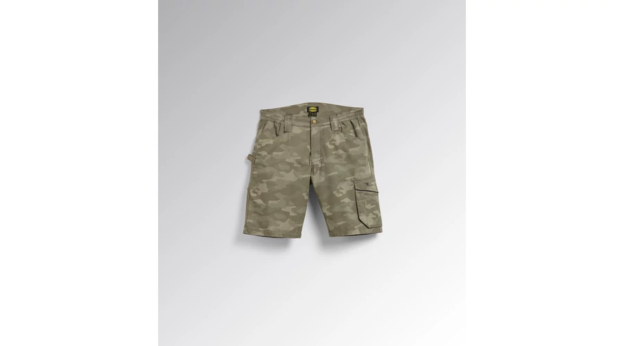 - Bermuda rövidnadrág terepszínű nyomtatással, oldalzsebbel, mérőszalag és kalapácstartó zsebbel - Kopásálló poliészter vászonból, gumírozott derékpánttal - Háromszoros varrással - Kontúrozott öv a nagyobb kényelem érdekében.