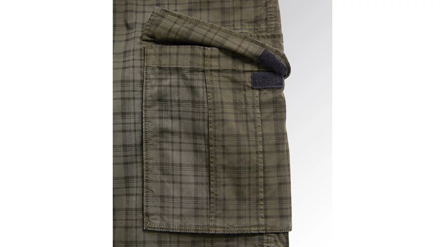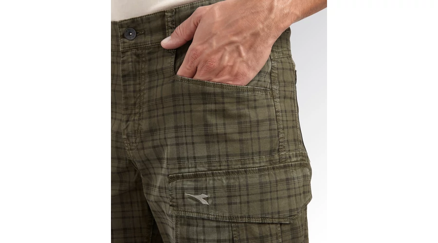 - Nyári cargo bermuda rövidnadrág kockás motívummal - Kontúrozott derékpánt a nagyobb kényelem érdekében, és kalapácshurok - Két elülső zseb, két nagyméretű cargo oldalzseb és két hátsó foltos zseb