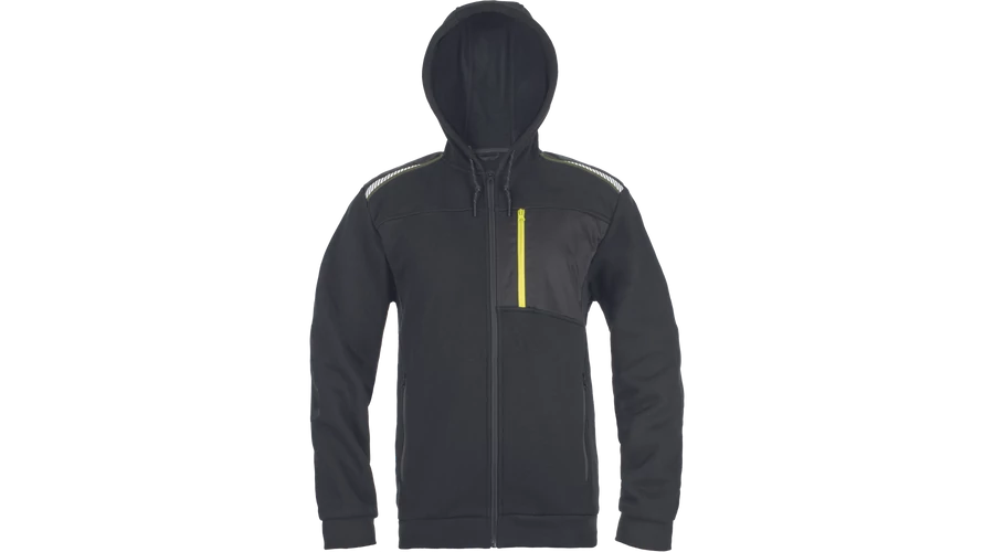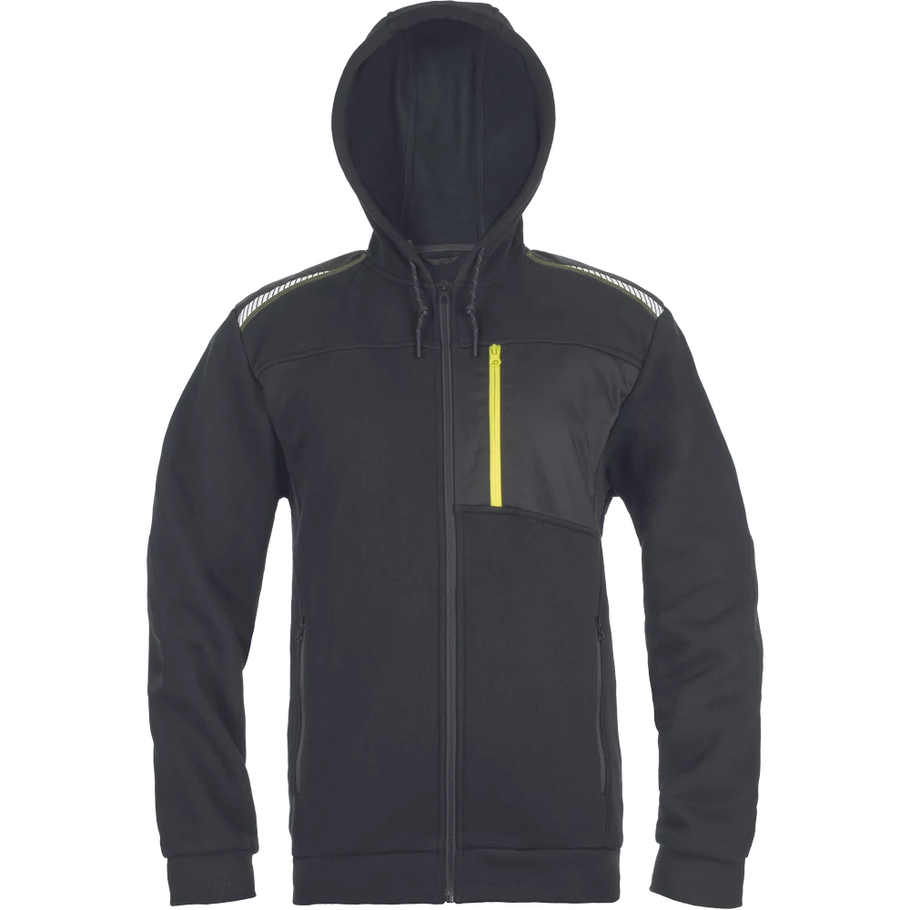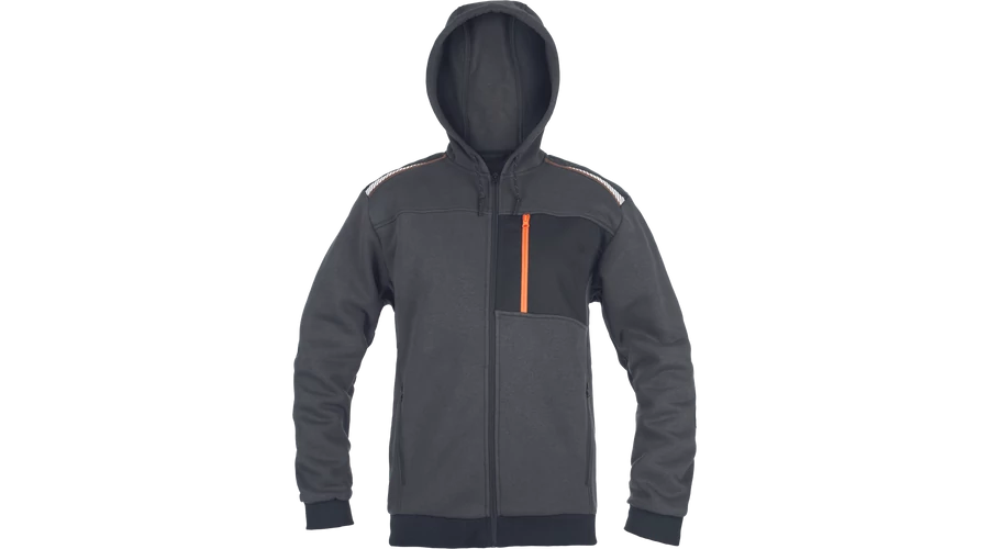 - Férfi cipzáras kapucnis pulóver - 2 oldalzseb - 1 mellzseb cipzárral - Megerősített vállak fényvisszaverő csíkokkal - Elasztikus alsó szegély és ujjbegy mandzsetta - Külső: 60 % pamut , 40 % poliészter, 300 g/m²