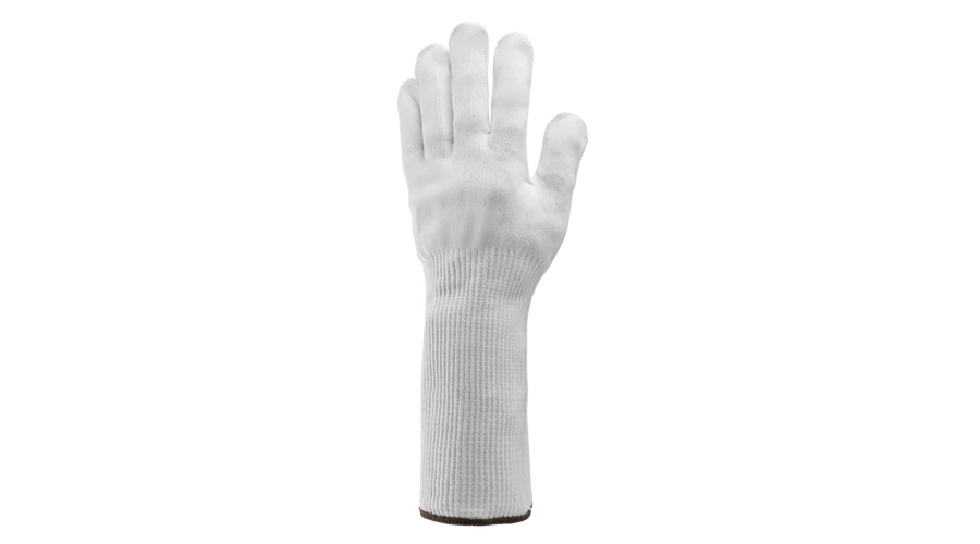 - Fehér, 13-as kötésű varrás nélküli UHMWPE és nejlon alapanyagú kesztyű, 20 cm hosszú mandzsetta