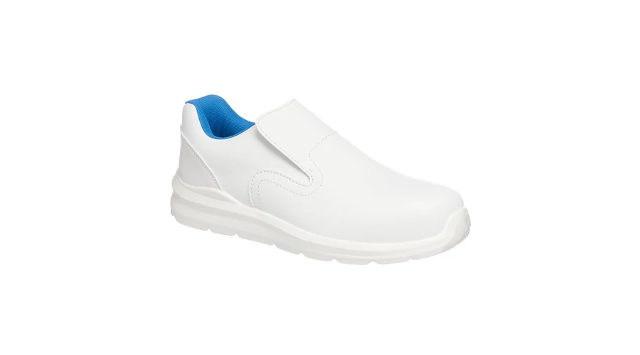 Ez a fémmentes, fűzős, mircofibre biztonsági tréner antimikrobiális bélést, talpbetétet és letörölhető felsőrészt kínál. A könnyen tisztítható felületet a felcsúsztatható kialakítás segíti, csökkentve ezzel a szennyeződés lehetőségét. Tökéletes az élelmiszeripar, a gyógyszeripar, a vendéglátás és a vendéglátóipar számára.