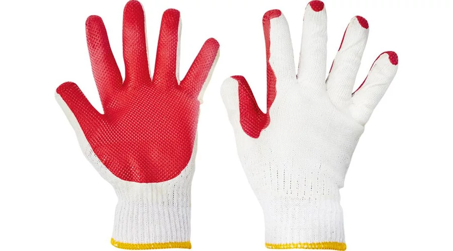 Kötött kevertszálas védőkesztyű erős PES/pamut szálból, latex impregnálással és extra latex mártással tenyéren EN 388 / 3132X