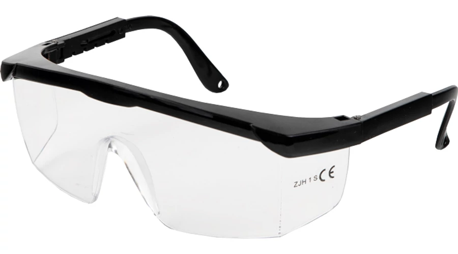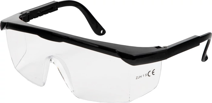 Védőszemüveg víztiszta lencsével és állítható szárhosszúsággal. Optikai minőség 1, védelmi képesség FT (alacsony energiájú ütések ellen szélsőséges hőmérsékeleten is). 1FT EN 166.
