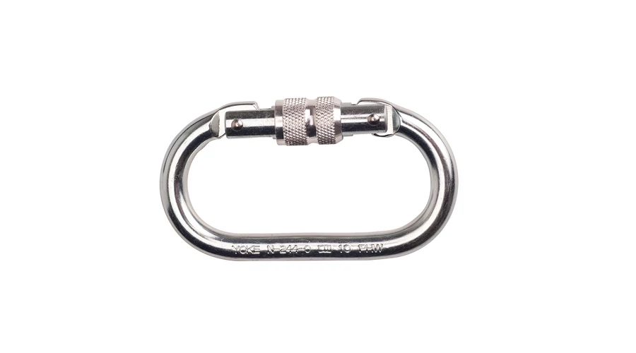 Ovális acél karabiner csavaros rögzítéssel. Hossz: 106mm, Nyílás: 19mm. Szakítóerő: 25kN