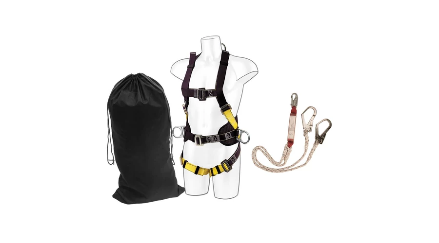 -2pontos tetheveder-Dupla végű energiaelnyelő karabiner és 2 acélzár-Húzózsinóros zsák, CE minősítés