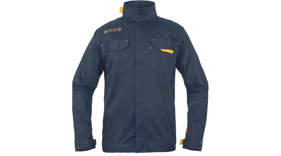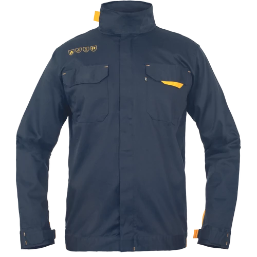multinorm jacket wtih zipper closure and velcro cover flap; stand-up collar; 2 chest pockets with velcro flap cover; velcro sleeve cuffs adjustment;
