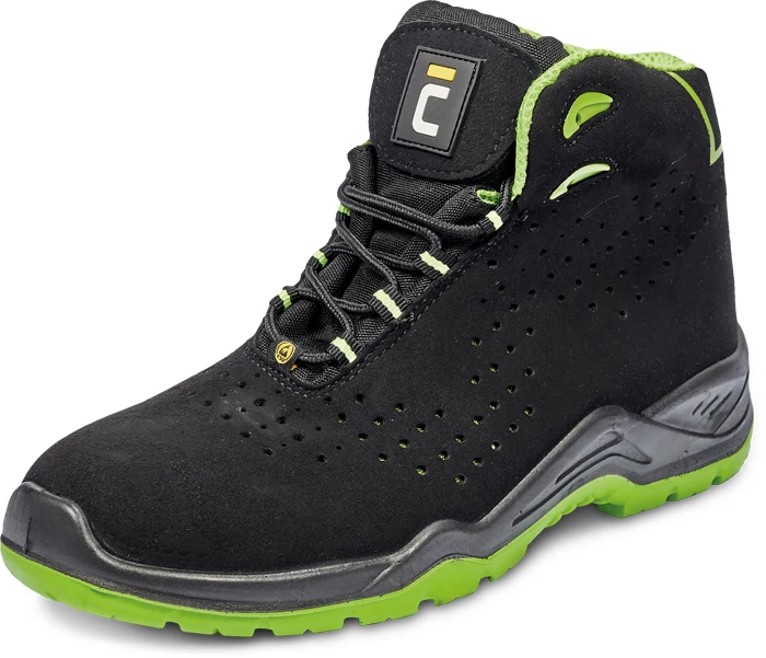 ESD biztonsági bakancs fémmentes lábujjvédővel és átszúrás ellen védő köztalppal, és kétrétegű PU/PU talppal. Innovatív mikroszálas anyag biztosít a elegendő szellőzést.