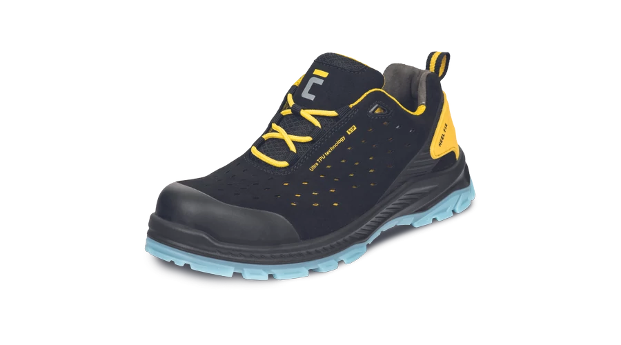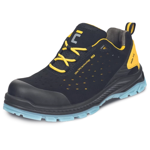 - ESD biztonsági félcipő fémmentes lábujjvédővel, átszúrás ellen védő köztalppal - kopásálló, kétrétegű PU/TPU talp, ami nem hagy nyomot a padlón - innovatív mikroszálas felsőrész perforált felülettel az ideális szellőzésért - TPU cipőorrvédő megnöveli a lábbeli élettartamát - extra saroktámasz a kényelemért és a megnövelt biztonságért