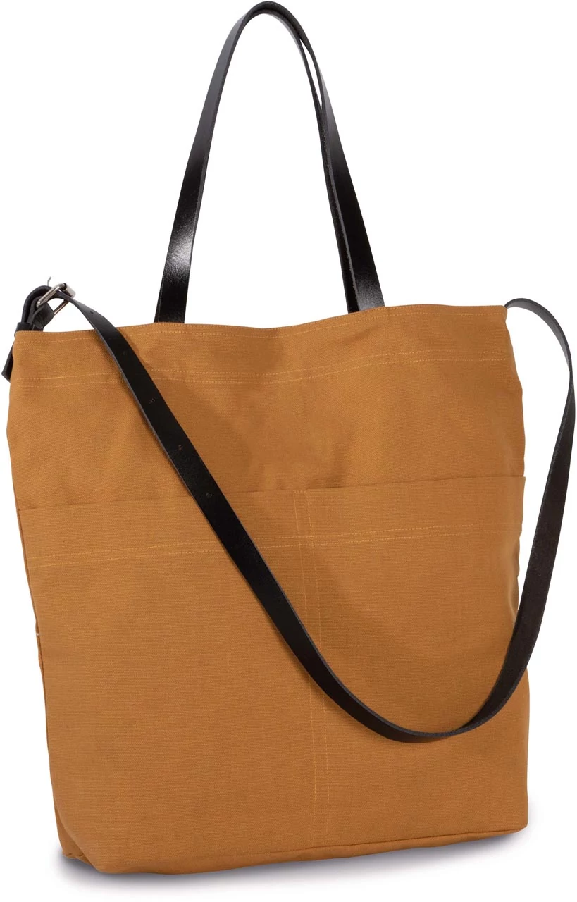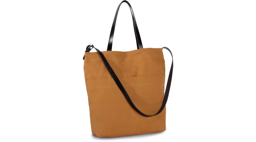 Pamutvászon kézitáska;Bőr fülek és vállpánt;Nagy első zsebek;Belső zseb;Mágneses gomb rögzítés;Anyag: 100% PamutSzabás: ZsebesRészletek: 300-349 g/m2