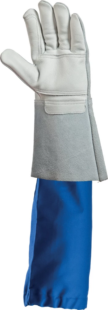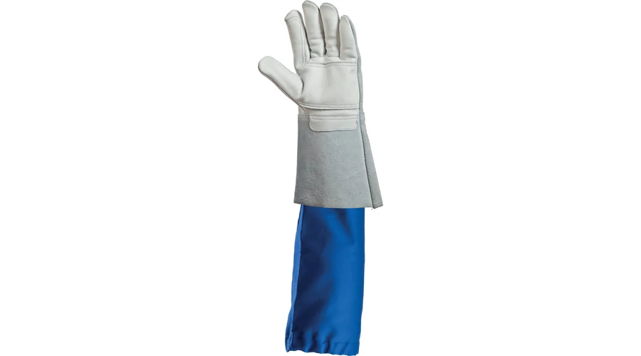 • késleltetett éghetőségű, nagy szakítószilárdságú, lángálló, 100% pamut anyag, mely véd a hegesztés során keletkező hő és fröccsenő fémek hatása ellen • SZÍN: királykék • gumírozott csukló és felkar EU szabvány: EN470-1, EN531