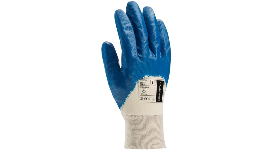 Pamut alapanyagból készült, 3/4 nitril mártott védőkesztyű. Karton mennyiség:240 pár. Csomag mennyiség:12 pár
