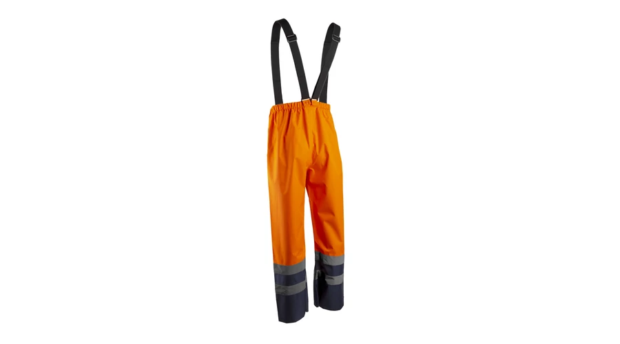 - 180 g/m2 vastag poliuretánnal mártott 100% Oxford 300D poliészter alapanyag - 5 cm széles fényvisszaverő csík: 2 a szárak körül - az alapanyag vízállósága: 3000 mm - hegesztett varrások, gumírozott derékrész a nadrágon