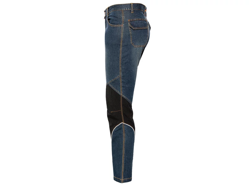 ISSALINE sportos szabású farmernadrág, kopásálló, cordura jellegű erősített betétekkel, melyeket a hátsó megerősítés tovább növel, így rendkívüli tartósságot biztosít. Négy klasszikus zsebbel rendelkezik, valamint rejtett colstok- és mobiltelefontartó zsebekkel is felszerelt. CE CAT. I – EN ISO 13688:2013 szabványnak megfelelő. Anyagösszetétel: 98% pamut, 2% spandex. Anyagvastagság: 280 g/m2 (mosás után). Méretek: S, M, L, XL, XXL, 3XL. Szín: kék fekete betétekkel (040). Dobozos kiszerelésben.