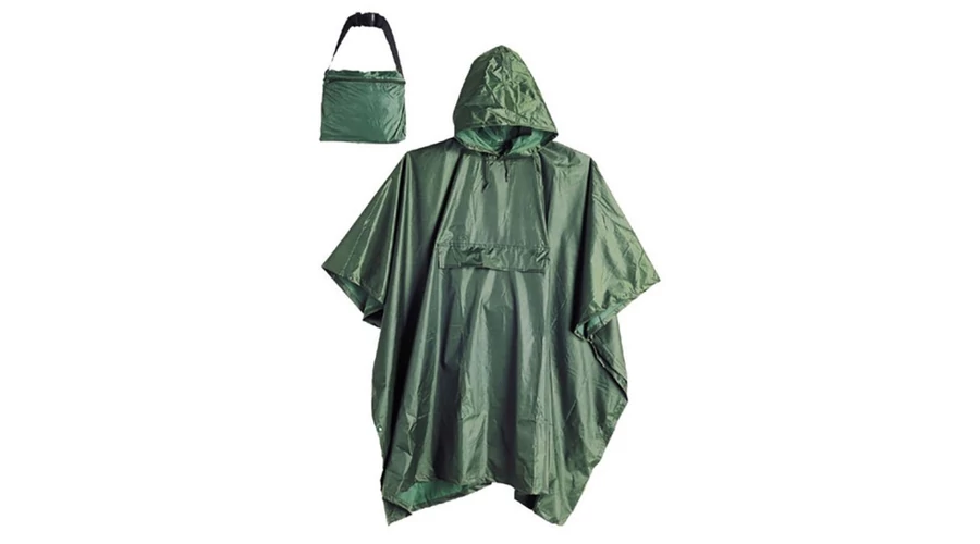 Az Issaline zöld poncsó praktikus megoldás esős időben, akár munkához, akár szabadidőhöz. Összehajtható kialakításának köszönhetően saját deréktáskájába csomagolható. Rugalmas pánttal és gyorscsatos rögzítéssel, oldalán patentos zárással rendelkezik. Fix kapucnija húzózsinórral állítható, a varrásai ragasztottak a vízhatlanság érdekében. Anyaga PVC bevonatú poliészter. Mérete: univerzális. Színe: zöld.