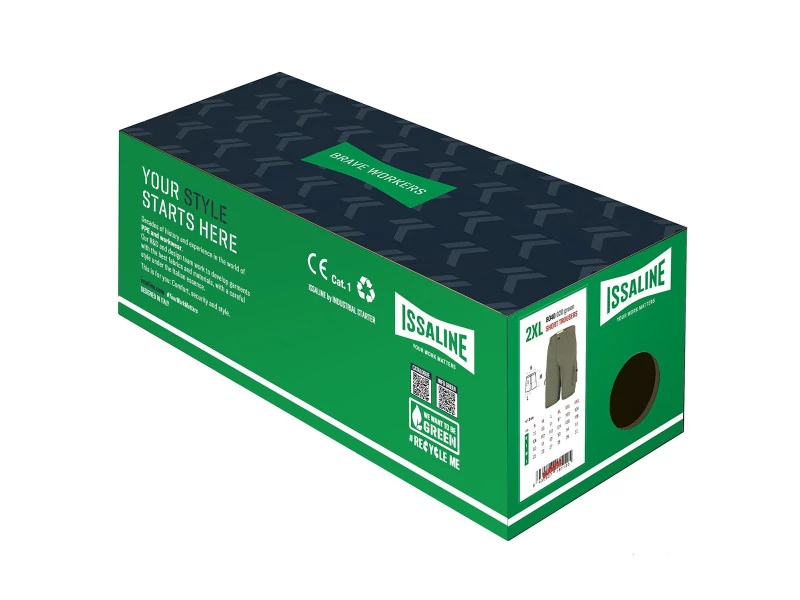 Az ISSALINE Raptor cipzáras és többzsebes kialakítású "cargo" bermuda, amely praktikus választás nyári munkavégzéshez vagy szabadidős tevékenységekhez. Számos zsebének köszönhetően kiváló tárolási lehetőséget biztosít. CE CAT. I – EN ISO 13688:2013 szabványnak megfelelő. Anyagösszetétel: 100% pamutvászon. Anyagvastagság: 215 g/m2. Méretek: S, M, L, XL, XXL, 3XL. Szín: zöld (020).