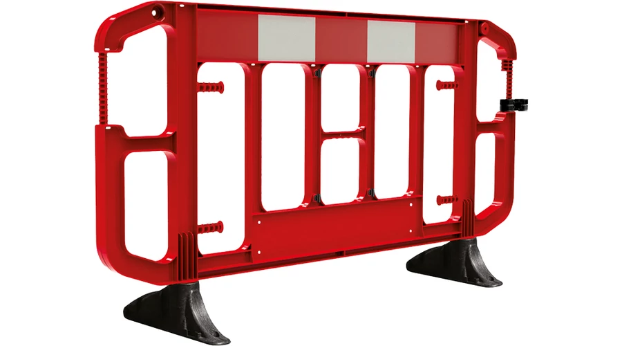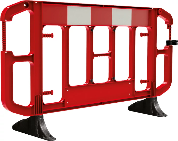 Kapcsolható és rakásolható útkorlát elem; prémium minőségű PP alapanyag, fémmentes és újrafelhasználható; fagypont alatti hőmérsékleten is megőrzi szilárdságát, 2 év színtartósság; fényvisszavető panel R1: EN12899-2, 20% -kal több fényt vet vissza, mint a standard alacsonyabb minőségű fényvisszaverő anyagok; asszimetrikus, botlásveszélyt csökkentő talpak; rugalmas csatoló elem, amely alkalmas más típusú elemekhez is - a kapocs merev összekötést is képes biztosítani - egyenetlen talajon is használható, például járdán, vagy durva terepen; intelligens reteszelő maximalizálja a tárolási és szállítási stabilitást, biztonságosan rakásolható; teleszkópos támasz is rendelhető.