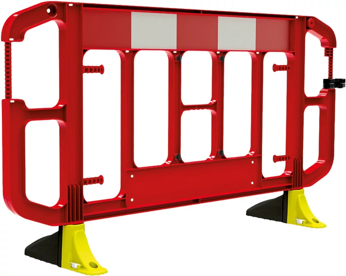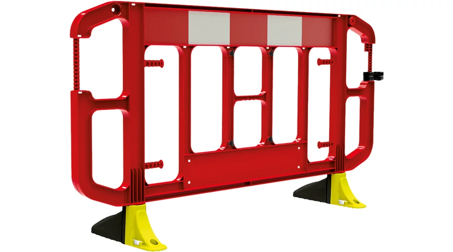 Kapcsolható és rakásolható útkorlát elem; prémium minőségű PP alapanyag, fémmentes és újrafelhasználható; fagypont alatti hőmérsékleten is megőrzi szilárdságát, 2 év színtartósság; fényvisszavető panel R1: EN12899-2, 20% -kal több fényt vet vissza, mint a standard alacsonyabb minőségű fényvisszaverő anyagok; asszimetrikus, botlásveszélyt csökkentő talpak figyelemfelkeltő színezéssel; rugalmas csatoló elem, amely alkalmas más típusú elemekhez is - a kapocs merev összekötést is képes biztosítani - egyenetlen talajon is használható, például járdán, vagy durva terepen; intelligens reteszelő maximalizálja a tárolási és szállítási stabilitást, biztonságosan rakásolható; teleszkópos támasz is rendelhető.