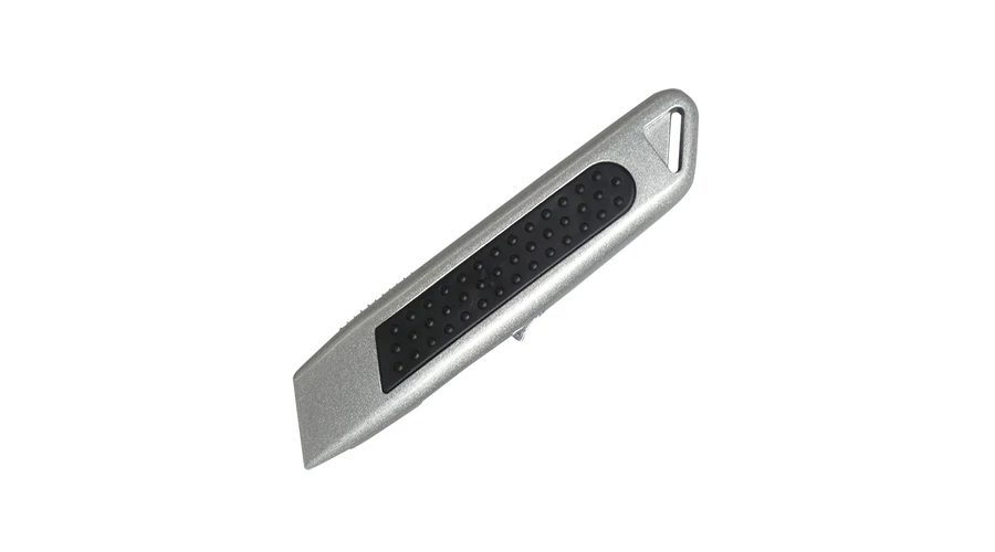 Fém markolattesttel készül jobb és balkezesek egyaránt használhatják. Felső pengeállító és automata pengevisszahúzó rendszerrel., Kisker doboz , Kisker jel , Gumírozott markolat, Pengevisszahúzó szerkezet, Egyaránt alkalmas jobb és balkezes felhasználók számára, Cink öntvényből készült