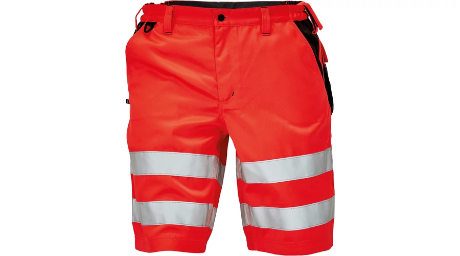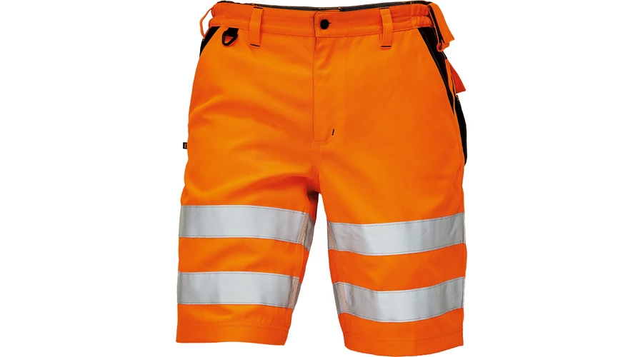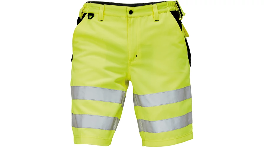 • férfi rövidnadrág jólláthatósági kivitelben rugalmas derékkal • 2 oldalzseb és 2 hátsó zseb • kalapácstartó kontrasztos színben • D-gyűrű • dekoratív varrás
