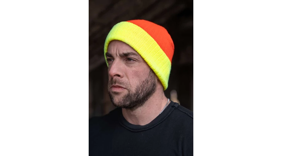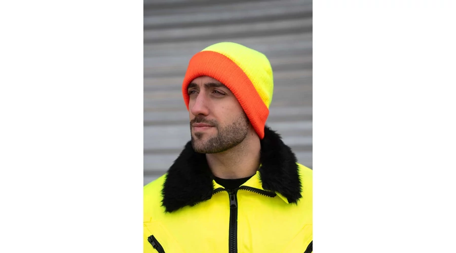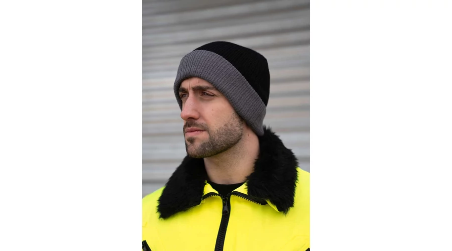 100% Polyacryl;Double knit beanie with contrast colour cuff;Custom stitchable;Soft feel for a comfortable feel;Two-tone;One size fits all;