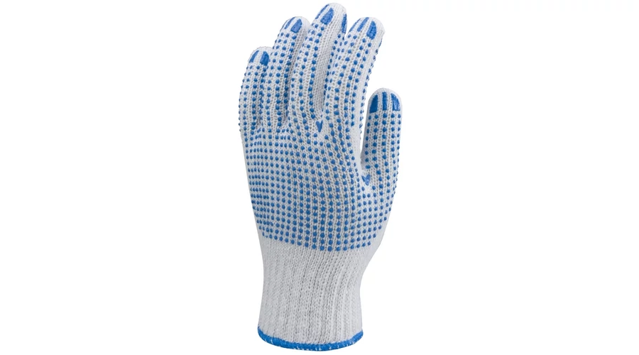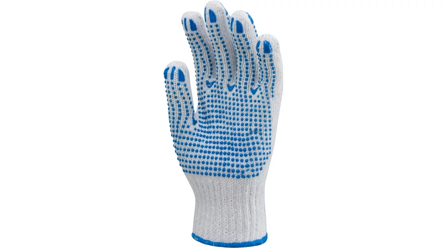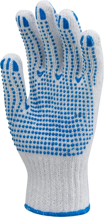 Kötött PES/pamut fehér férfi kesztyű kétoldalt kék pöttyökkel
