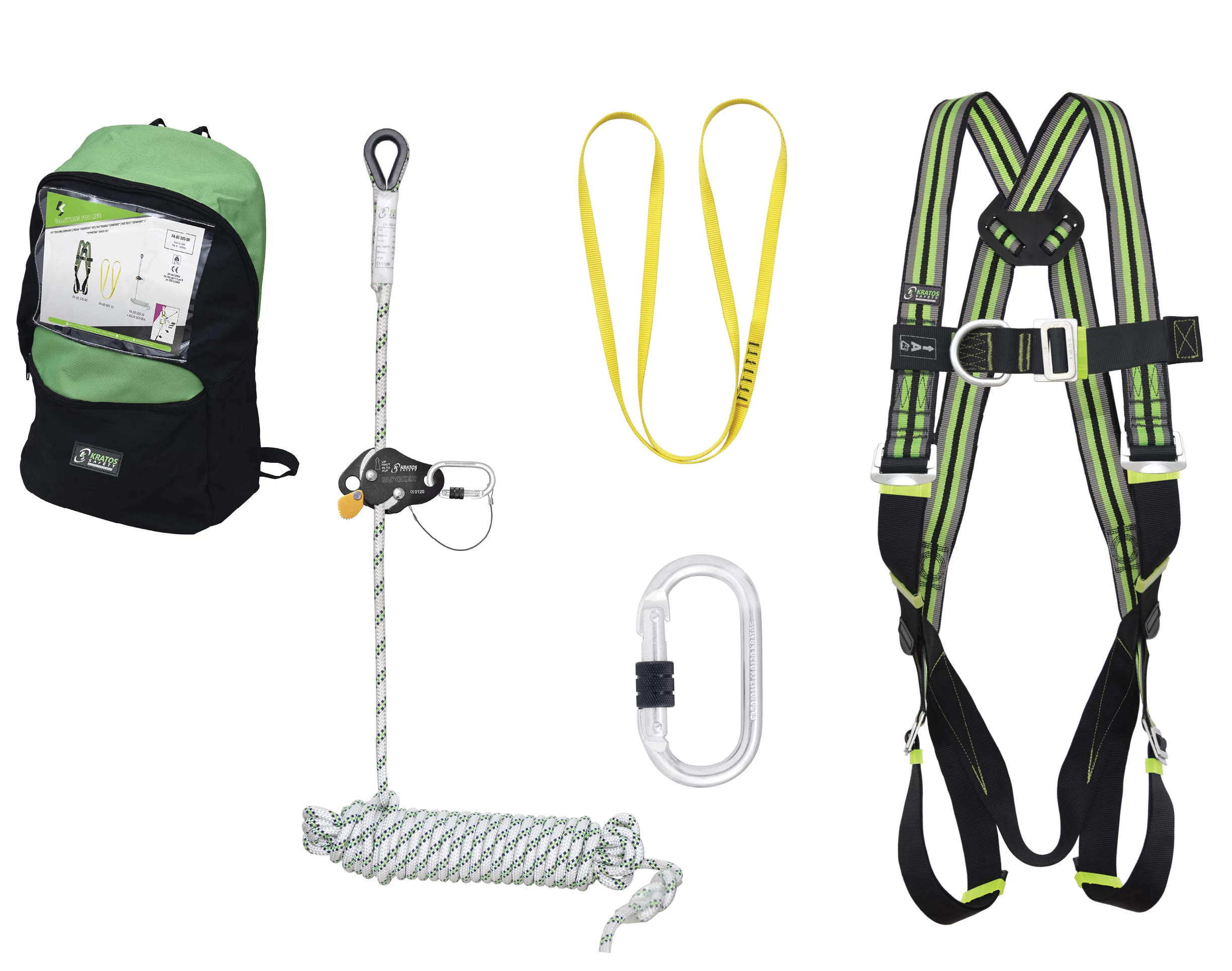 Állványkészlet tartalma egy FA 10 103 00 testheveder, egy 1,8m hosszú FA 30 304 18 energiaelnyelő heveder. Valamint a készlet praktikus tárolásához egy jutazsákot is adunk. Elsősorban 6m feletti munkavégzésekhez ajánljuk.