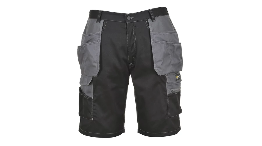 A Granite rövidnadrág stílusos, praktikus és ideális választás a melegebb időjáráshoz. A kiváló minőségű polipamut anyag használata biztosítja a mai munkakörnyezetben szükséges kényelmet és tartósságot. A strapabíró nylon-oxfordból készült, bebújtatható tokzsebek tökéletesek a szerszámok számára. A többi több zseb biztonságos tárolást kínál, és befogadja az okostelefon méreteit.