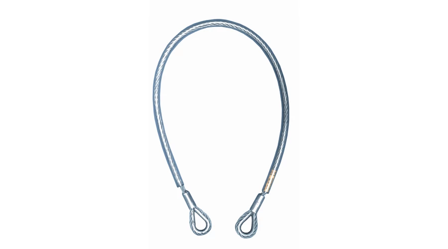 Horganyzott acél kikötőkötél (O 8 mm), mindkét végén hurokkal. Megfelel az EN 354 és EN 795 szabványoknak (CE 0082).