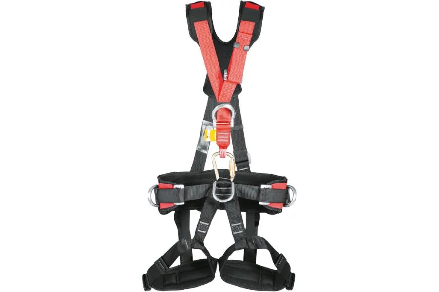 Ergonomikus megoldású, kényelmes biztonsági heveder hátsó és elülső felfüggesztő elemmel, állítható váll-, comb-, illetve háthevederekkel, oldalsó gyűrűkkel felszerelt helyzetbeállító derékövvel, valamint személyek mentésére, evakuálásra, illetve mászásra szolgáló gyűrűvel