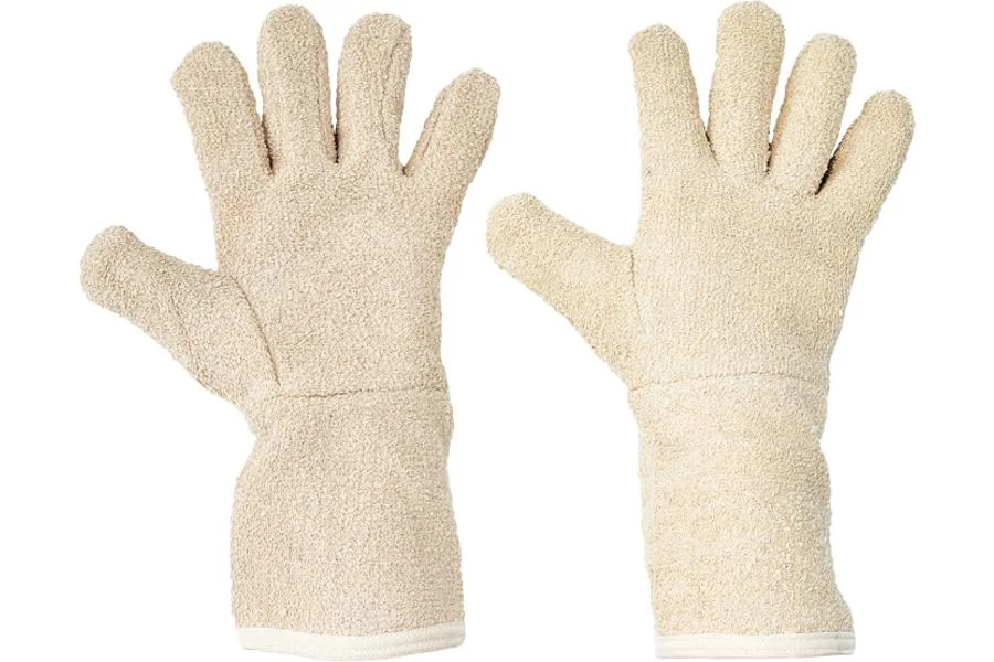 Vastag pamut frottírból varrt mandzsettás kesztyű
