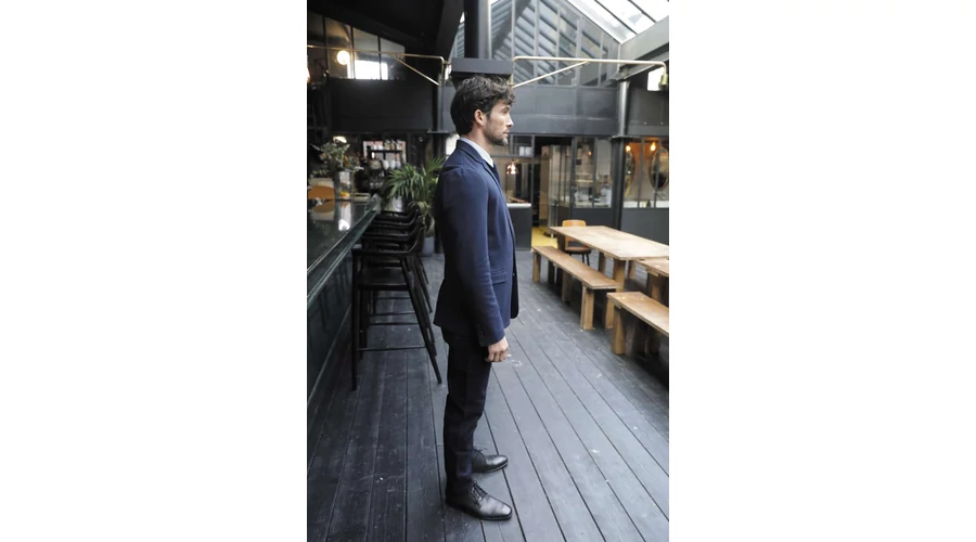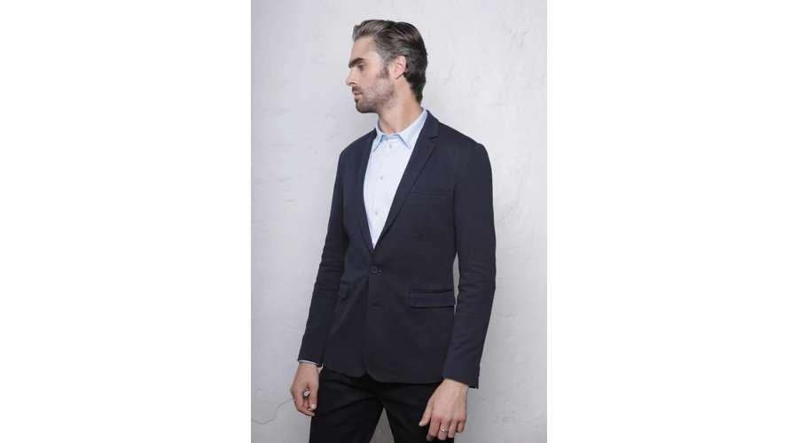Quality -PIQUÉ KNIT FABRIC210;67% polyester -33% cotton;210 gsm;Lining: 100% polyester taffeta210T;Style -Tailored collar;2 buttons;2 flap pockets;1 chest welt pocket;1 back slit;Half lining;Részletek: 200-219 g/m2