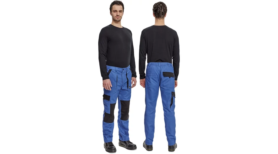 - férfi munkanadrág rugalmas derékkal - 2 első zseb, 1 oldalzseb, 2 hátsó zseb - megerősített térdrész - leengedhető szárak