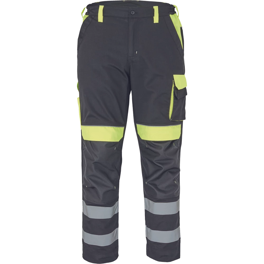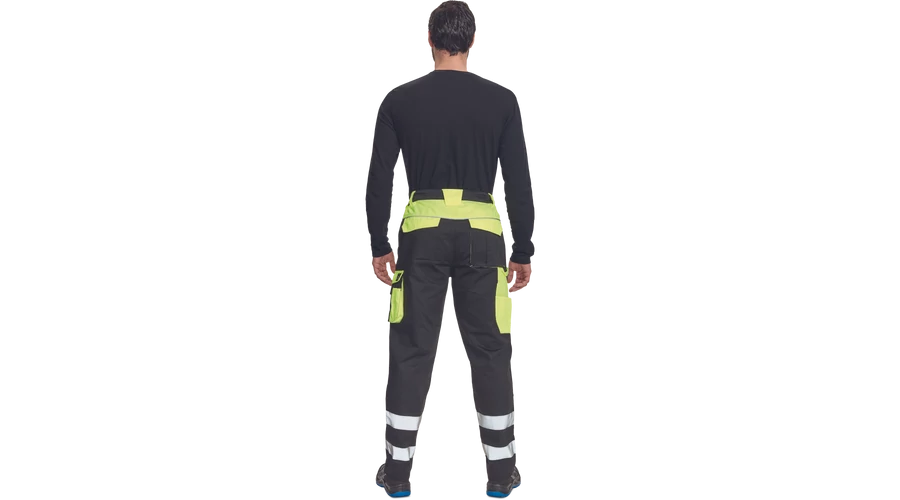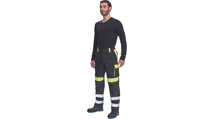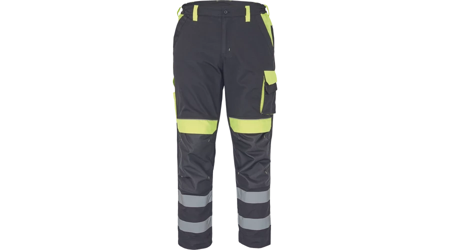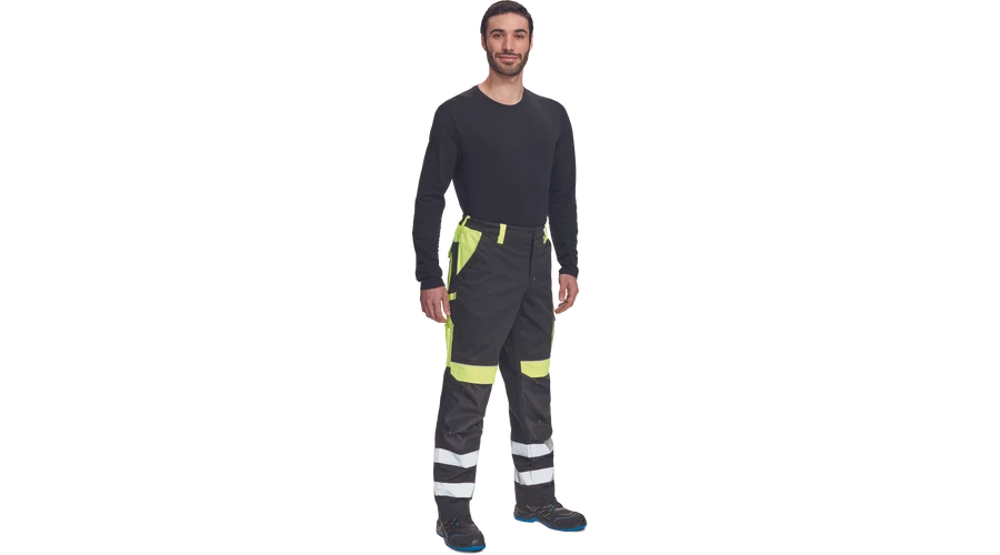 - férfi munkanadrág rugalmas derékkal, meghosszabítható szárakkal - 1 nagy mellzsebbel, 2 első zsebbel, a bal száron 1 dupla zsebbel - a jobb száron 2 kisebb hátsó zsebbel, hátul 2 zsebbel készül - az alsó szárakon két rávarrt fényvisszavető csíkkal van ellátva - megerősített térdrész és térdzseb Oxford 600D anyagból térdvédő behelyezéséhez