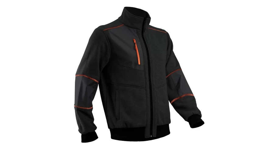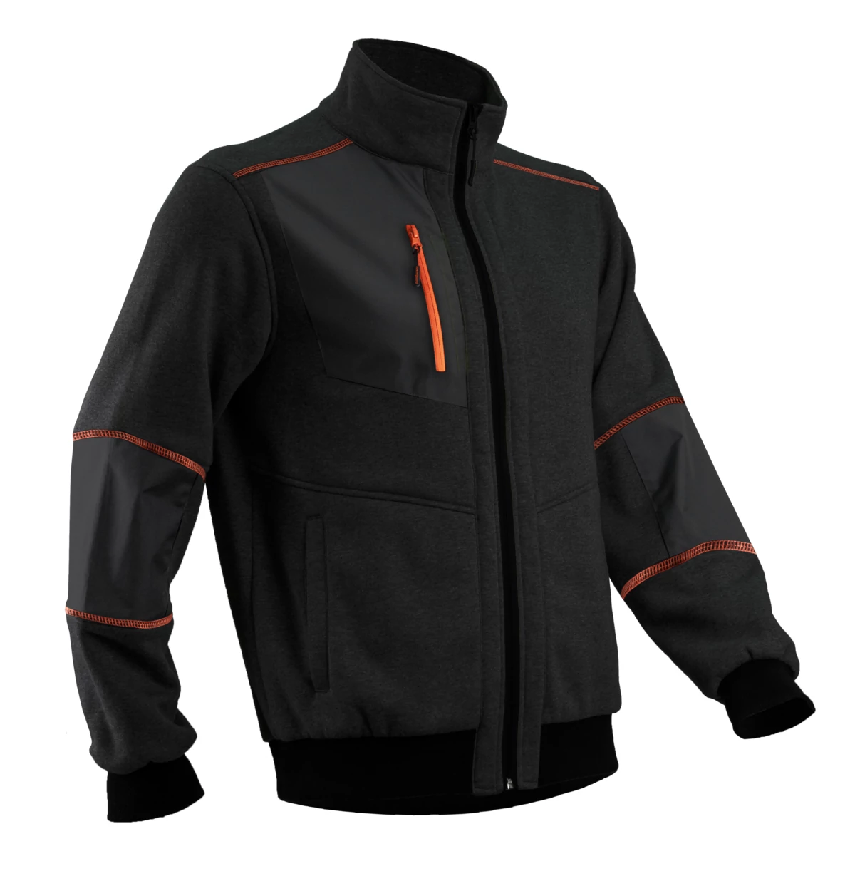 • Alapanyag: bolyhosított dzsörzé – 70% pamut+30% PES - 300 g/m2 vastag • PASSZÉ: bordázott és elasztikus 100% Poliészter • RIPSTOP BETÉT: (5 mm) PVC-vel borított 100% PES - 300 g/m2 • Kopásálló Ripstop betétek a könyöknél • Álló gallér • Cipzáras záródás • 1 cipzáras kontraszt színű felső zseb • 2 függőleges oldalzseb • 2 belső zseb • Bordázott textil mandzsetta és aljrész • Kopásálló Ripstop megerősítés a könyökrészenTulajdonságokKényelem: belül bolyhozott Ellenálló: Ripstop megerősítés Dizájn: kontraszt színű cipzár a mellrészenIpari ágazatokRegionális/közhasznú hatóságok, Infrastruktúra és építőipar, Építőipari szakmunka, Transzport és logisztika
