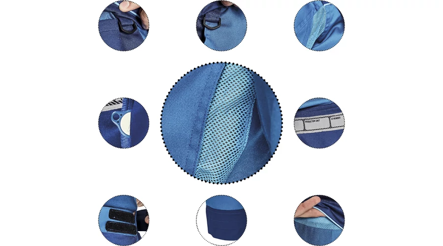 - 1 mellkasi zseb, belül D-gyűrűvel