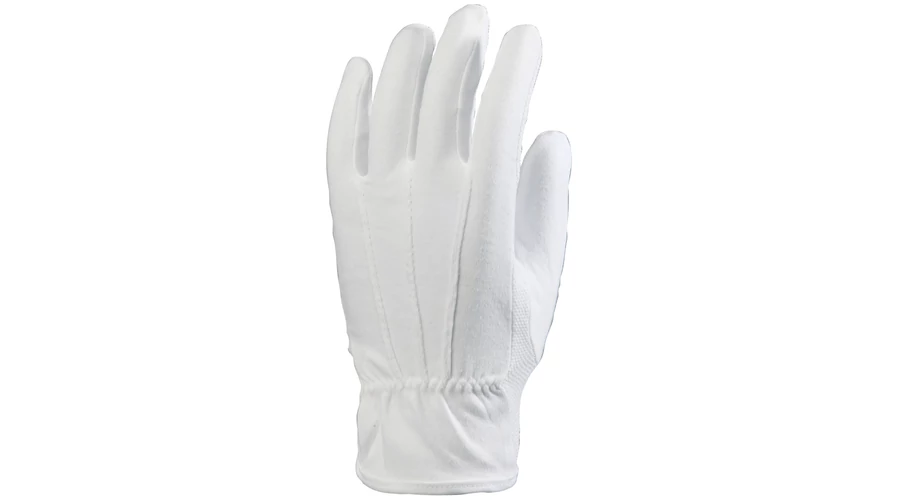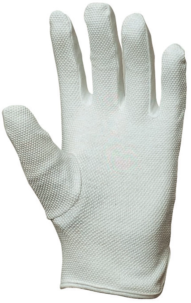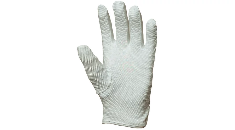 Pamutkesztyű, fehér, varrott, tenyerén PVC minipettyek