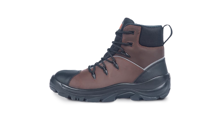 A kiemelkedően tartós ASTA munkavédelmi cipő kifejezetten igényes és nedves munkakörülményekhez készült. Masszív, stabil, ugyanakkor meglepően könnyű kialakítású. Vízálló membránja révén kiválóan alkalmas erdei, mezőgazdasági vagy bármely egyenetlen terepen végzett munkához, ahol az időjárás gyakran változik (sár, kövek, füves területek stb.). A felsőrész teljes értékű marhabőrből készül, amely kopásálló és tartós. A kétrétegű (PU/Vibram gumi) talp nemcsak kényelmes viselést biztosít, hanem kiemelkedő csúszásgátló tulajdonságot és stabilitást nyújt egyenetlen vagy instabil felületeken is. A talp olajálló, valamint ellenáll a 300 °C-ig terjedő hőhatásnak. A cipő antisztatikus kialakítású, sarokrészében energiaelnyelő betéttel.