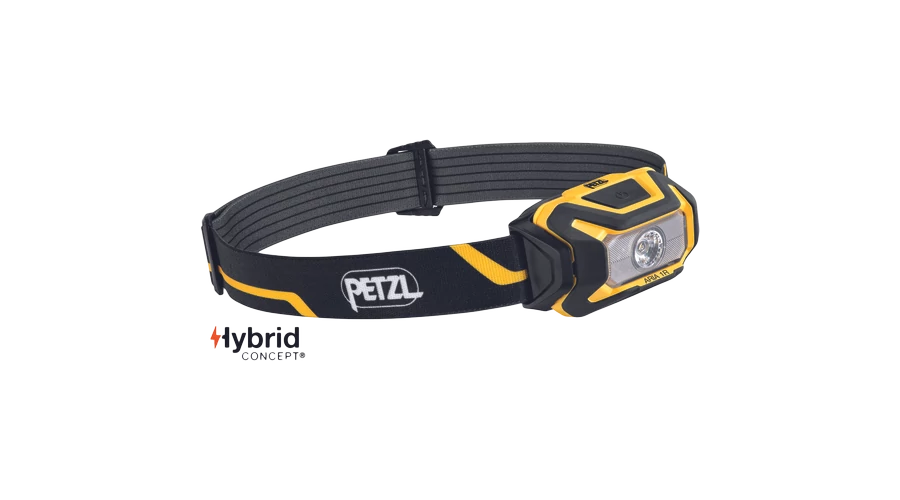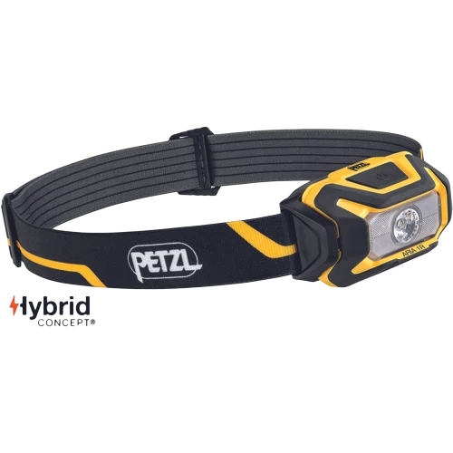 Compact, rechargeable, durable, and waterproof headlamp. Casting 450 lumens, the compact and rechargeable ARIA 1R headlamp was specifically designed to be used by tradespeople and maintenance professionals. Durable, it is fall and impact resistant. It is also waterproof and dustproof, making it suitable for various work conditions. Easy to use, with a single button for controlling all lamp functions. The uniform flood beam offers comfortable close-range vision. It is convenient and can be worn on the head, around the neck, and on different types of helmets, using mounting plates that are available as accessories. ARIA 1R comes with the CORE rechargeable battery and also works with three standard batteries, thanks to its HYBRID CONCEPT design.